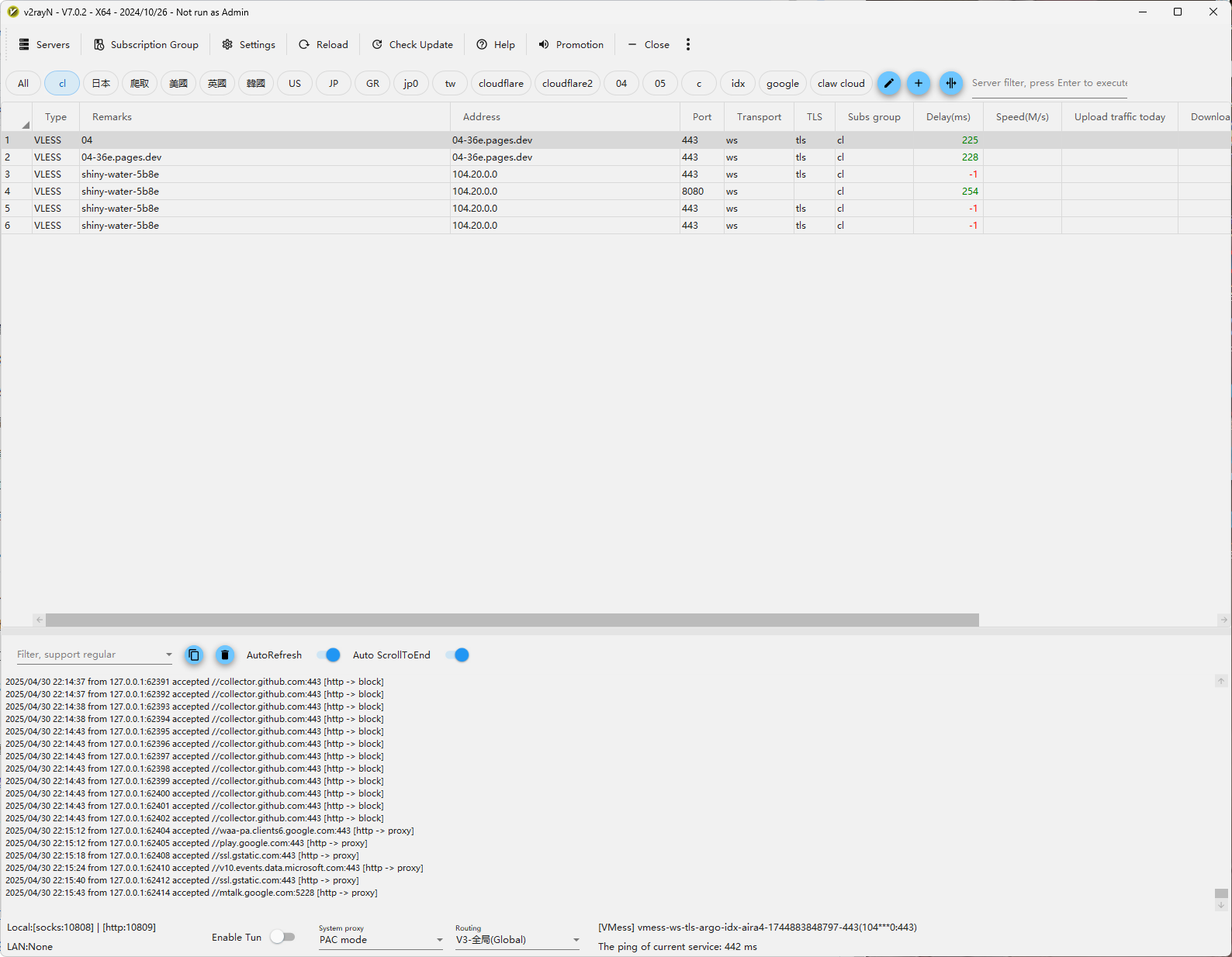 `导入到客户端(不可以直接使用ping不通,需要设置出站流量)